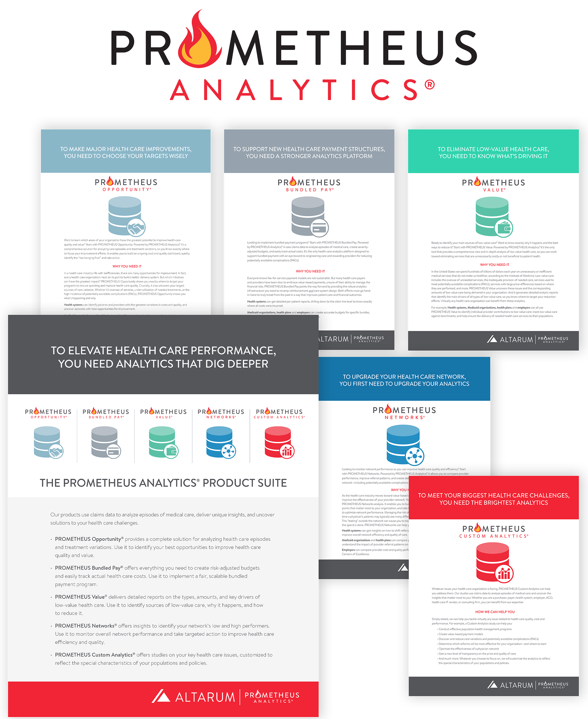 Developed a cohesive set of data sheets and product logos for Altarum’s Prometheus Analytics Product Suite, designed to complement their existing brand.